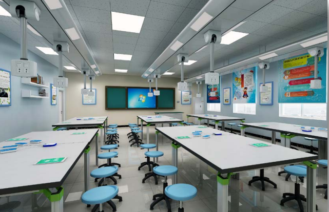 初中数学学科教室推荐配置预算约50万/间(含软硬件、桌椅、安装调试、简单装修)。